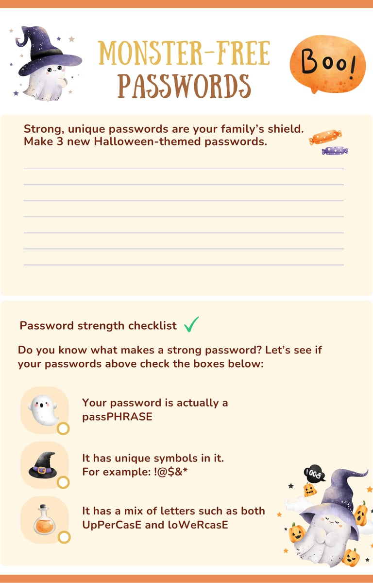 So grab your kids, get creative, and build some monster-free passwords that keep your family safe all year long. 🕸️